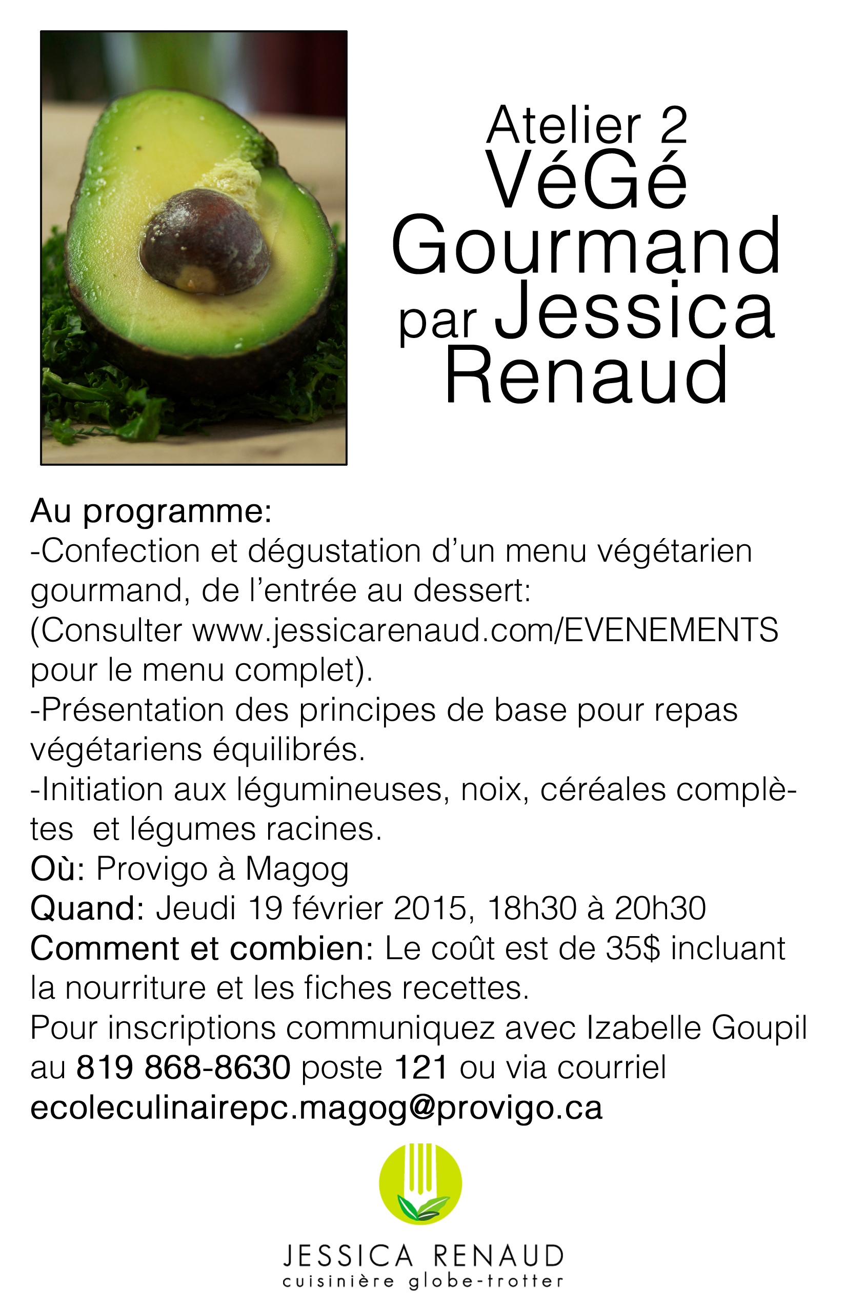 Dans ce deuxième volet vous serez initiés aux légumineuses, à diverses noix et céréales complètes et aux versatiles légumes racines. Au menu: tartinade de courge musquée et feta, casserole de pois chiche et carottes grillées au carvi sur polenta accompagnée d'une savoureuse salade d'orge à la sicilienne et pour terminer en beauté, de délicieux brownies au baies de goji à base de haricots noirs. L'atelier est de seulement 35$ ce qui inclut la nourriture et les fiches recettes. N'oubliez pas vos contenants pour rapporter vos victuailles à la maison. Pour information ou inscription veuillez contacter Izabelle Goupil au 819 868-8630 poste 121 ou via courriel au Cette adresse e-mail est protégée contre les robots spammeurs. Vous devez activer le JavaScript pour la visualiser.